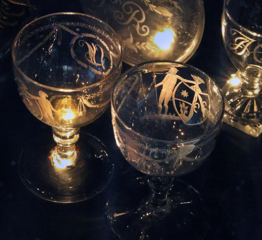 Smak på god akevitt mens du opplever det vakre glasset fra Gjøvigs Glasværk og hører historiene om hva de skålte med da glassene var nye. Mjøsmuseets direktør Arne Julsrud Berg forteller om den storstilte sprittransporten som gikk på Mjøsa.