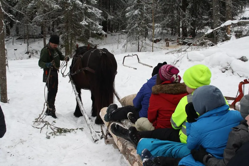 Målet er at elevene skal lære om bruk av skogen som ressurs før og nå. Vi tar utgangspunkt i tradisjonell drift med hest, der elevene blir med på ulike oppgaver og aktiviteter sammen med karer som har arbeidet i skogen. Elevene skal bruke øks, sag, barkespade og tømmersaks og får være med å laste tømmer på tømmersleden.